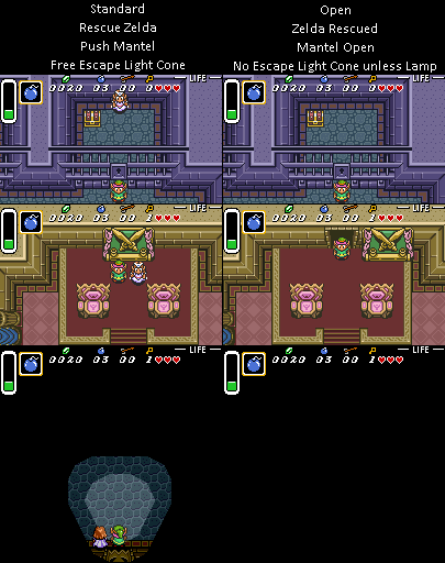 Open: Zelda Rescued, Mantel Open, No Escape Light Cone unless Lamp.